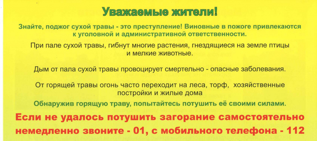 В случае необходимости не забывайте телефоны экстренных служб: 01, 101 или 112! Помните и соблюдайте требования пожарной безопасности, которые являются залогом Вашей жизни и Вашего имущества.